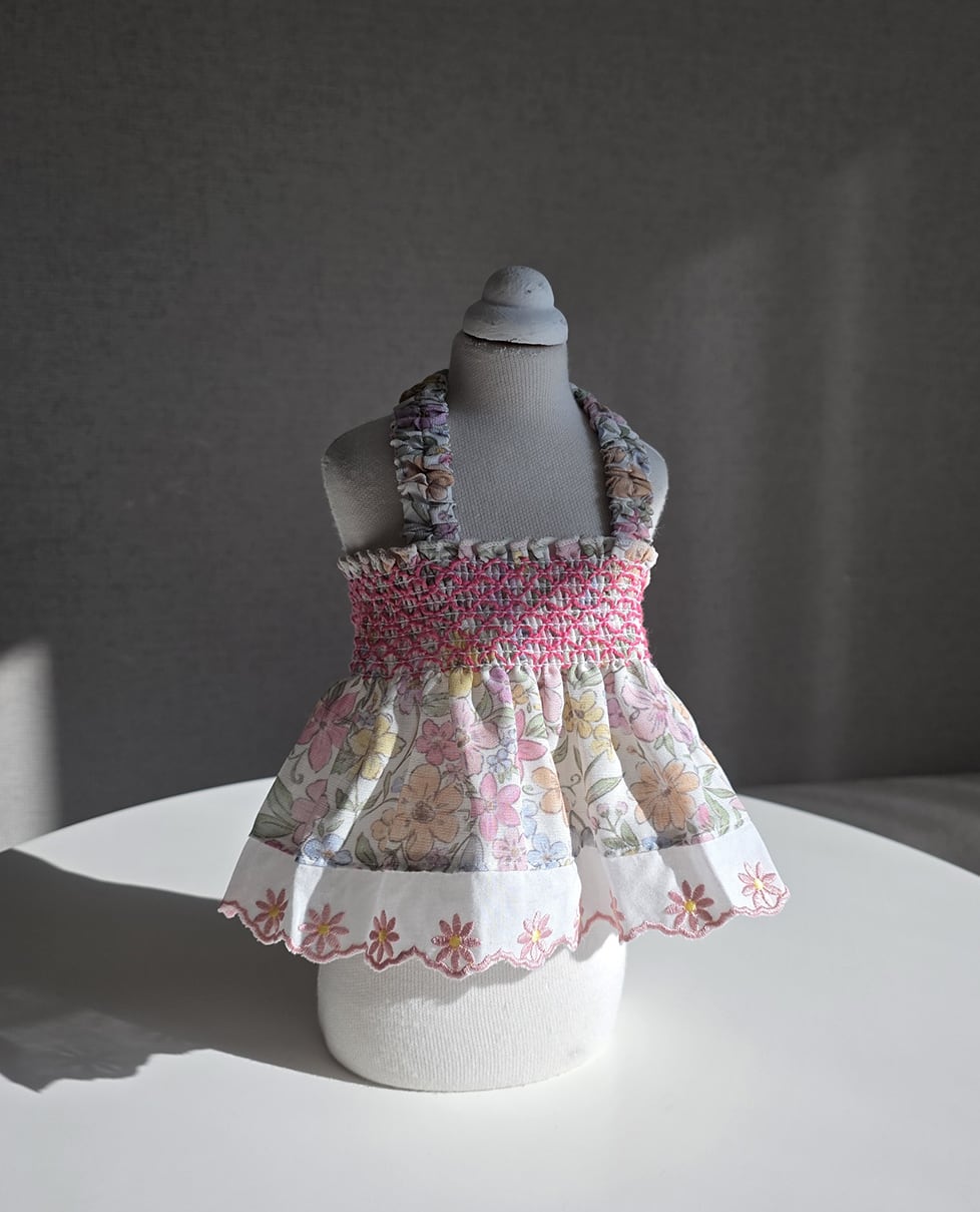 優れた伸縮性: 柄と色を活かしたスモック刺繍のディテールにより、伸縮性に優れています。