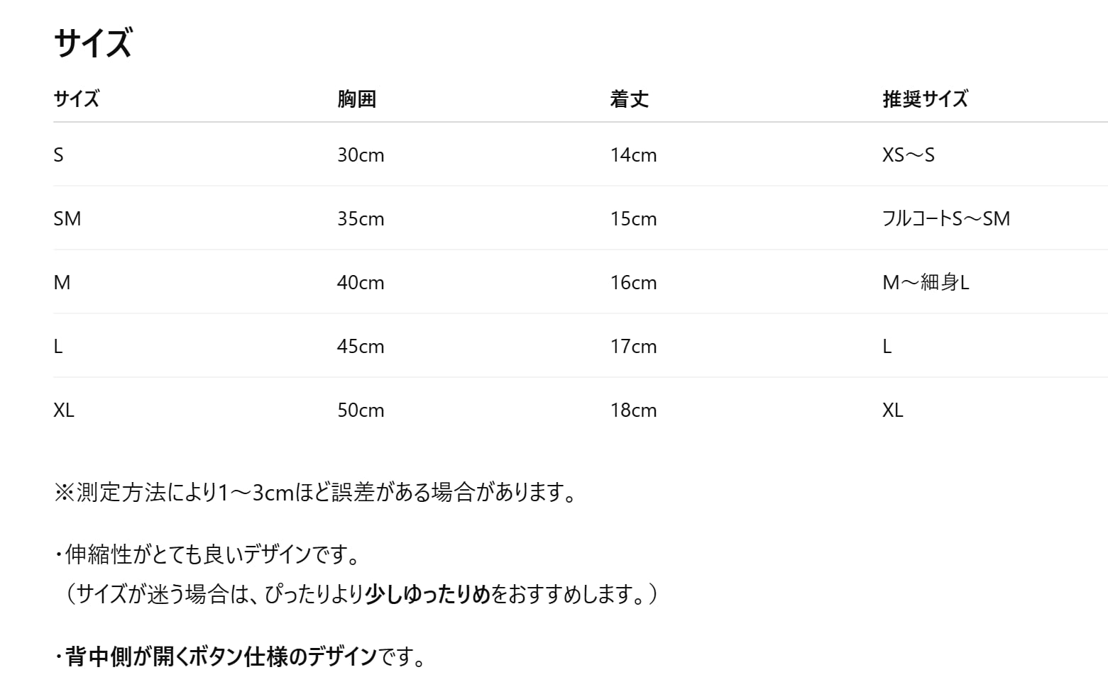 トップス:SM〜M