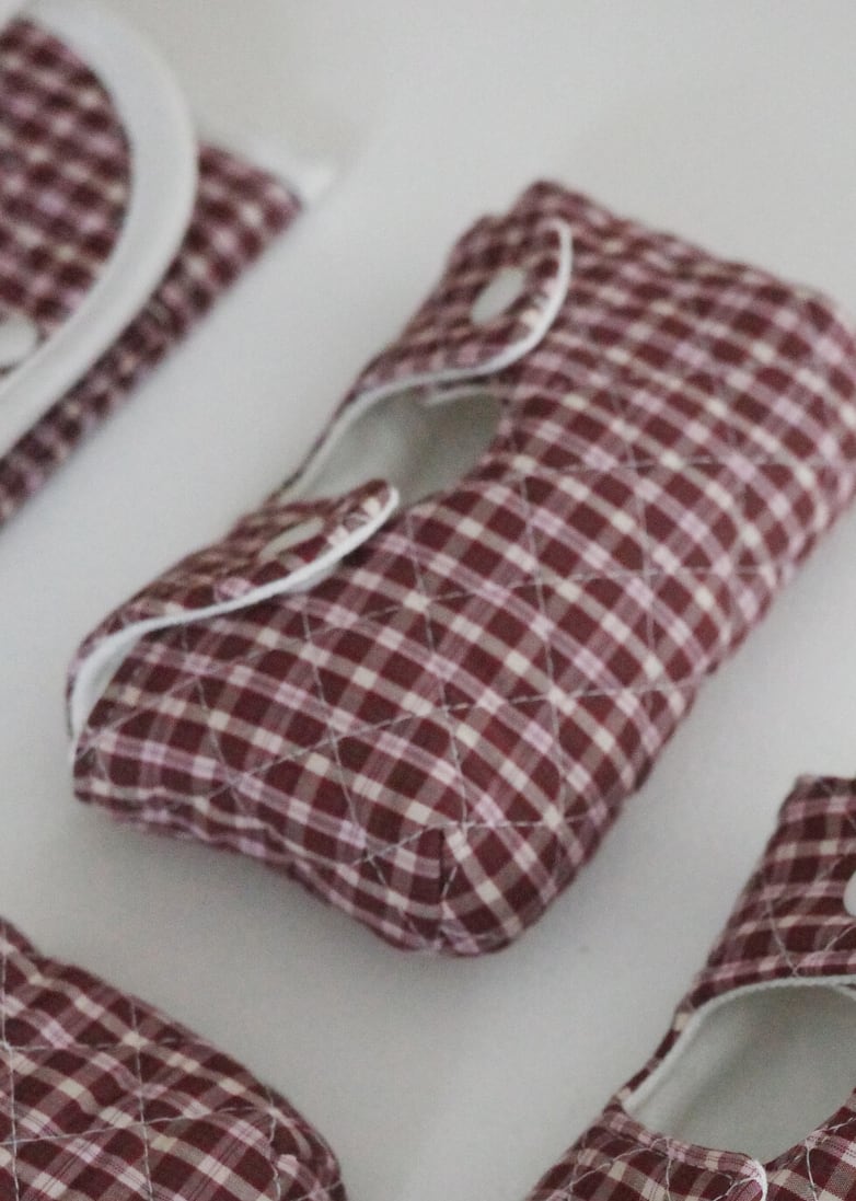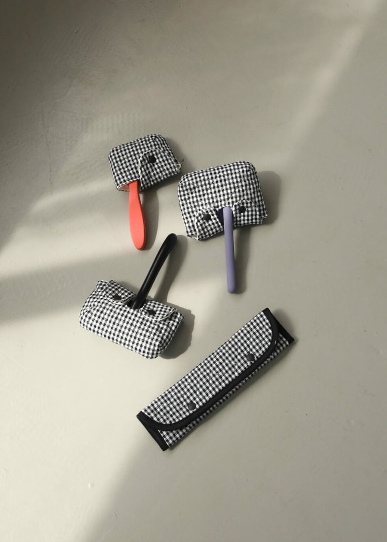 毎日使うスリッカーブラシを安全に保護できるよう、厚みのあるキルティング生地で作られたスリッカー専用ケースです。