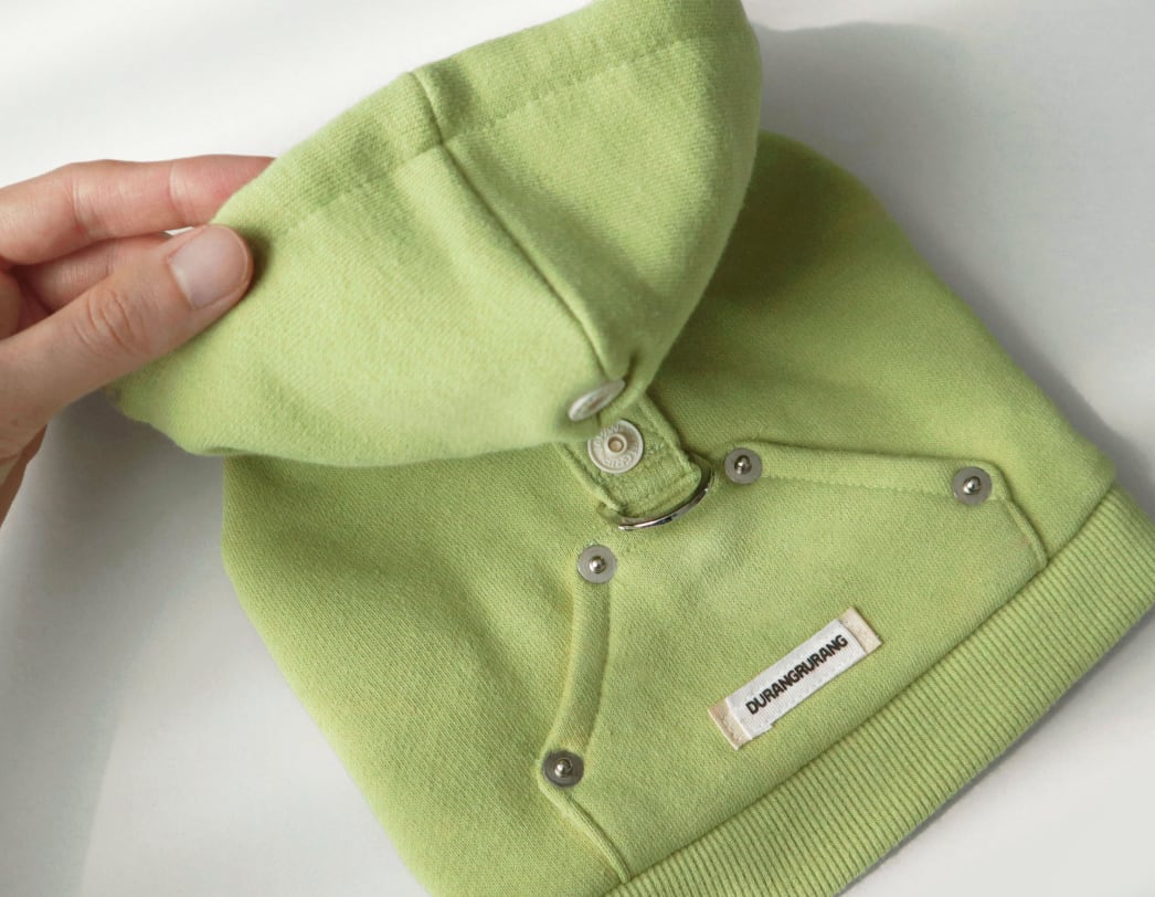 柔らかな裏毛(スウェット)生地で作られたフーディーハーネスです。