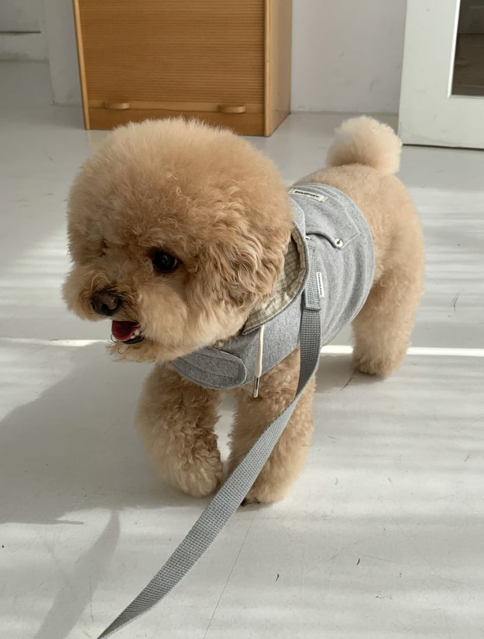 ハーネスですが、軽く羽織るフーディーのように洋服感覚で着用できます。