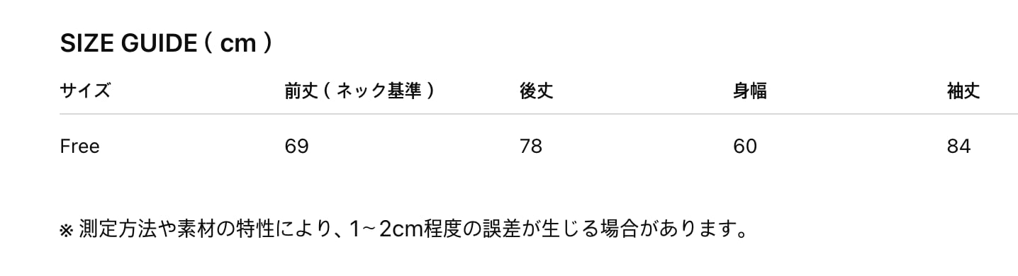 ゆとりのあるシルエットのフリーサイズ展開です。