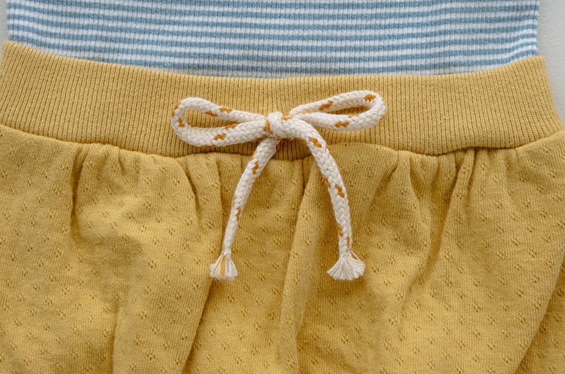 ボトム部分は自然なギャザーを入れることで、丸みのある可愛らしいヒップラインを演出しました。