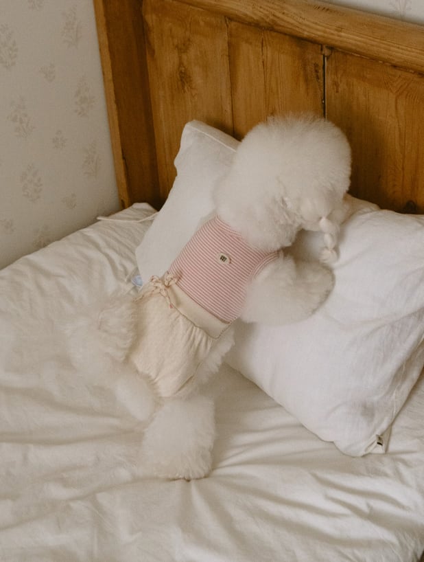 ボトム部分は自然なギャザーを入れることで、丸みのある可愛らしいヒップラインを演出しました。