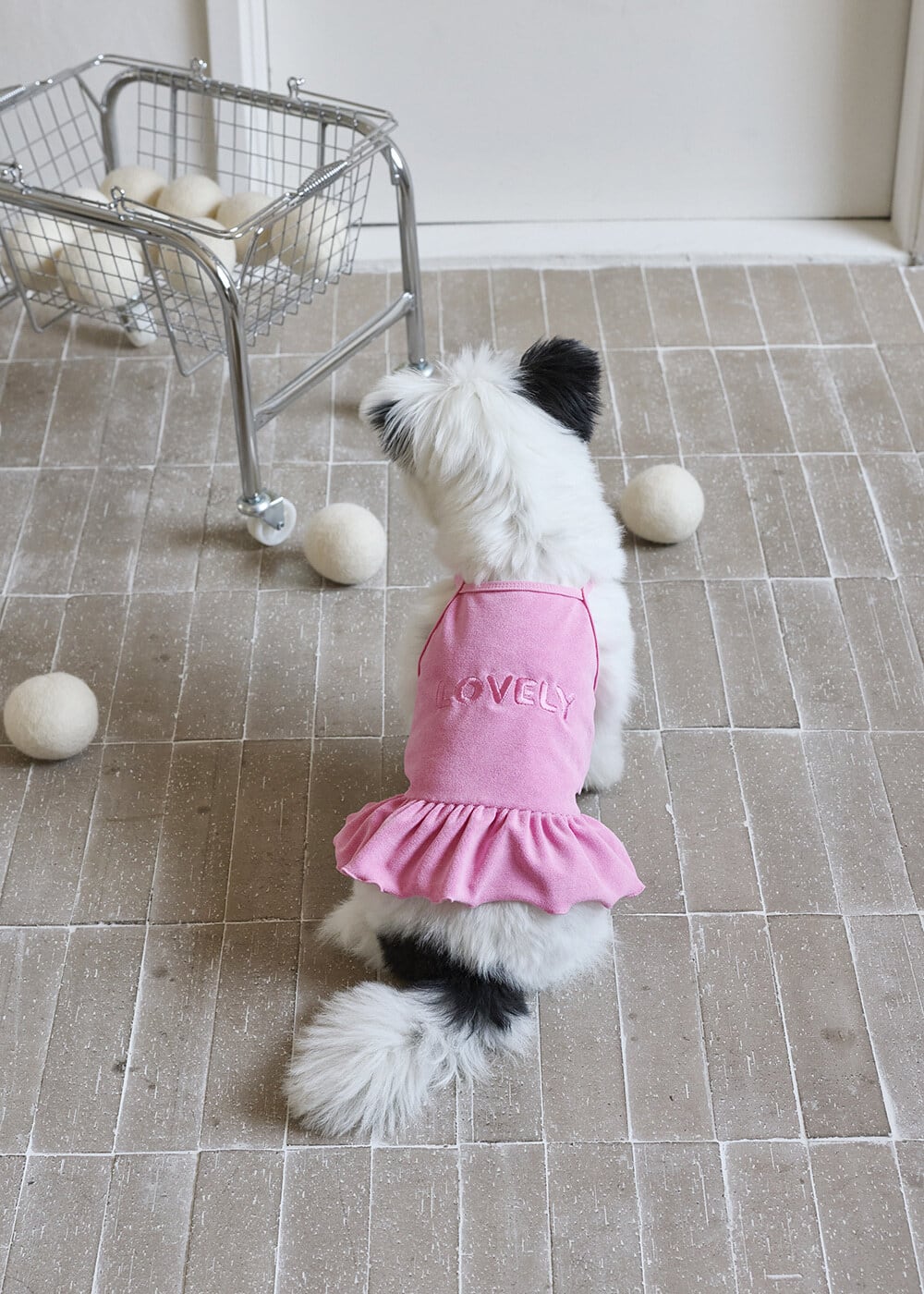 「LOVELY」の刺繍がアクセントとなり、