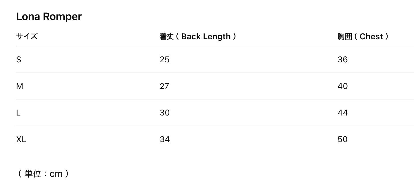 ※ワンピース / ロンパースの着丈は肩紐を含まない長さです。