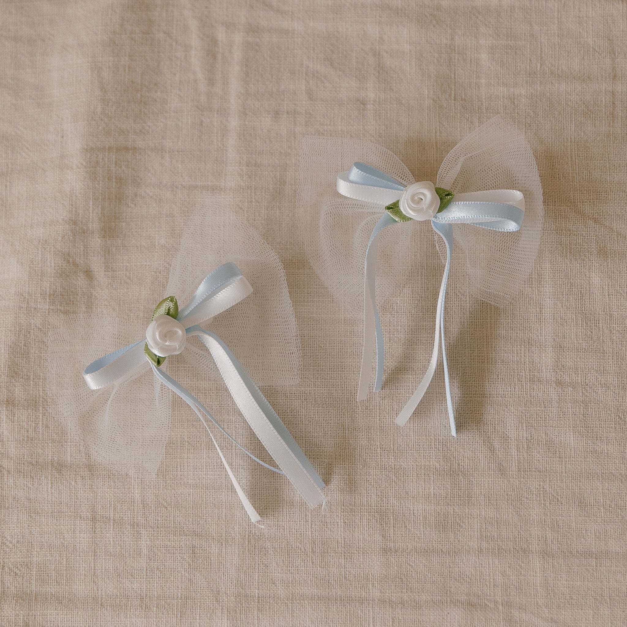 予約【kiki&nini】Rose Twin Ribbon Hair Pin (2 Colors) ※単品購入不可