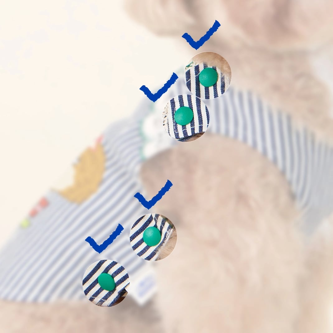 ポドクスのイージースナップデザインは、愛犬の体をやさしく包み込む設計です。