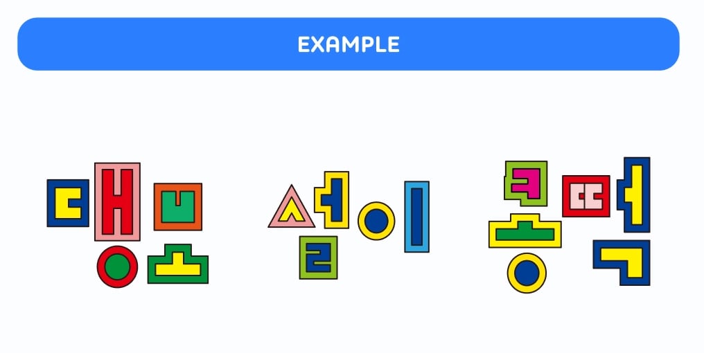 多様な形とカラーのハングルデザインで構成されています。