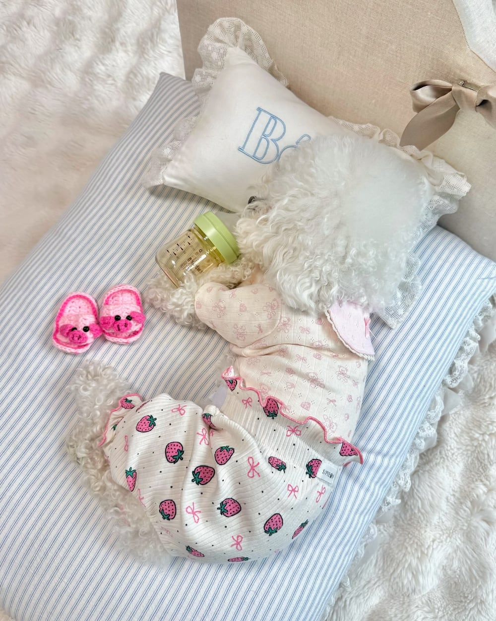 ミルキーなカラーに愛らしいくま柄をプラスし、