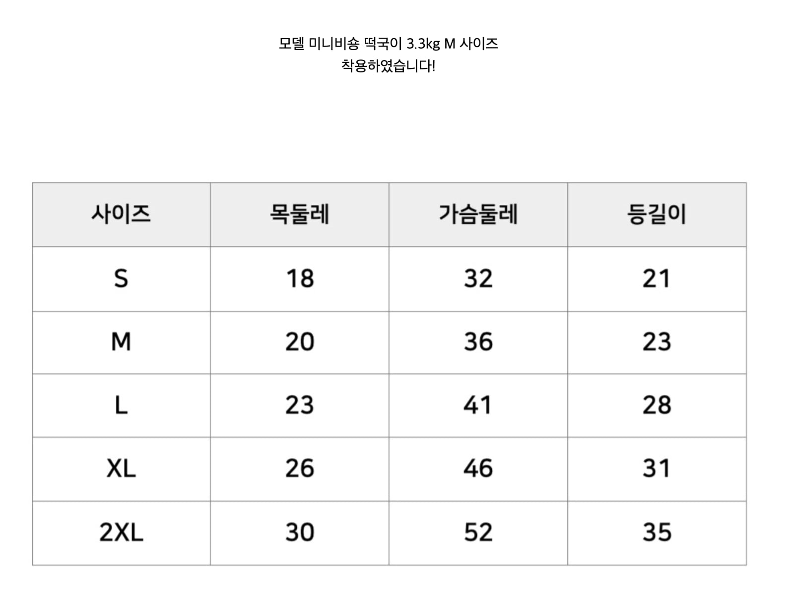 XL:首回り26 / 胸囲46 / 着丈31