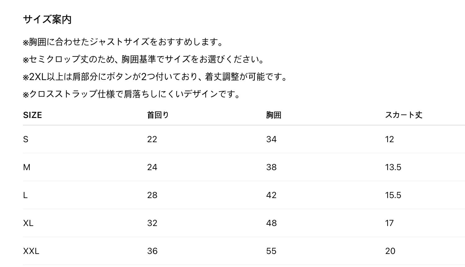 首回り20cm / 胸囲33cm / 着丈22cm