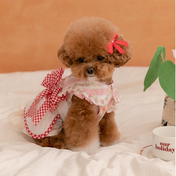 予約【Rolling pepe】Fleur Check Dress - Red
