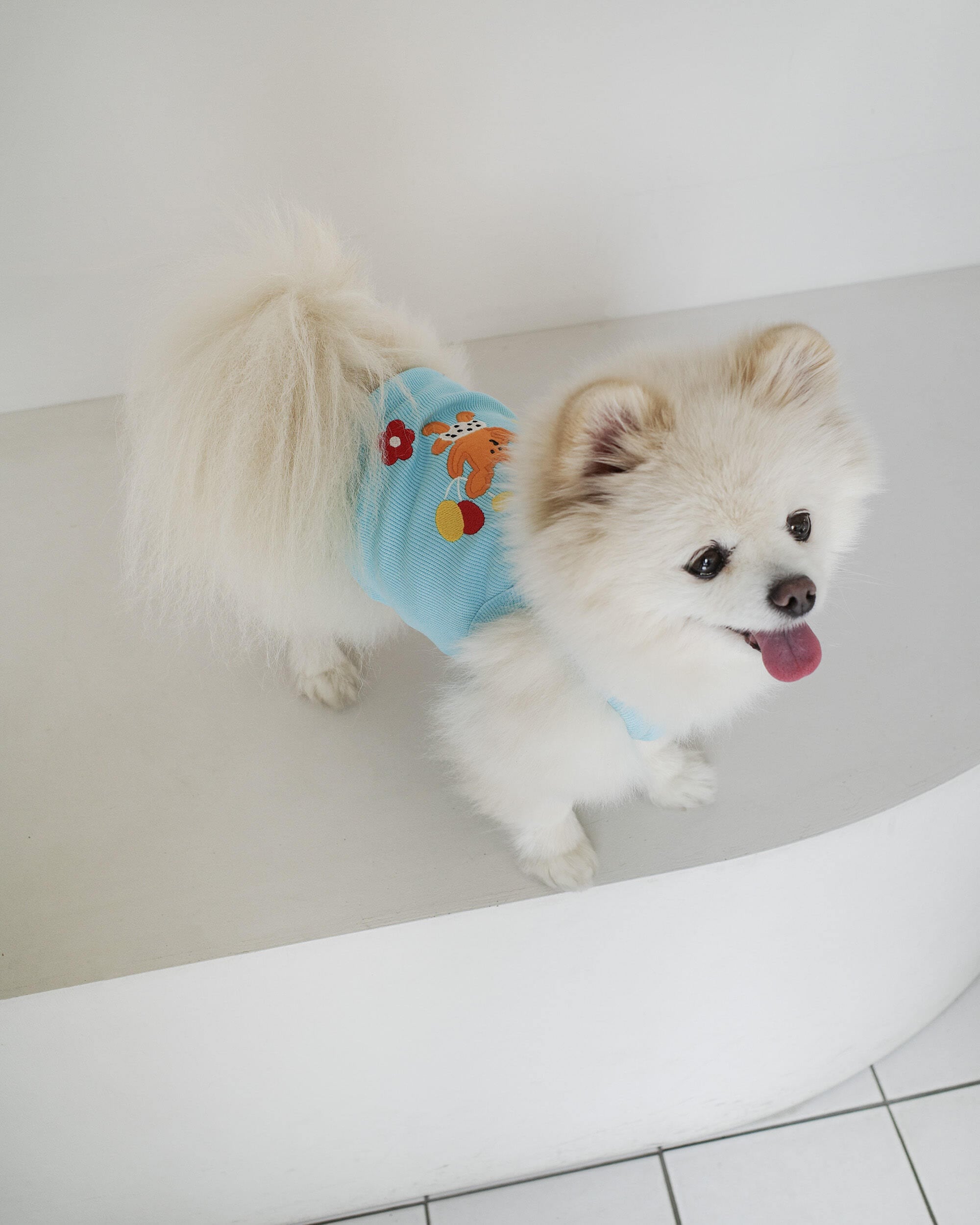 ・風船を持って空を飛ぶワンちゃんの姿を刺繍で表現したクロップトップです。