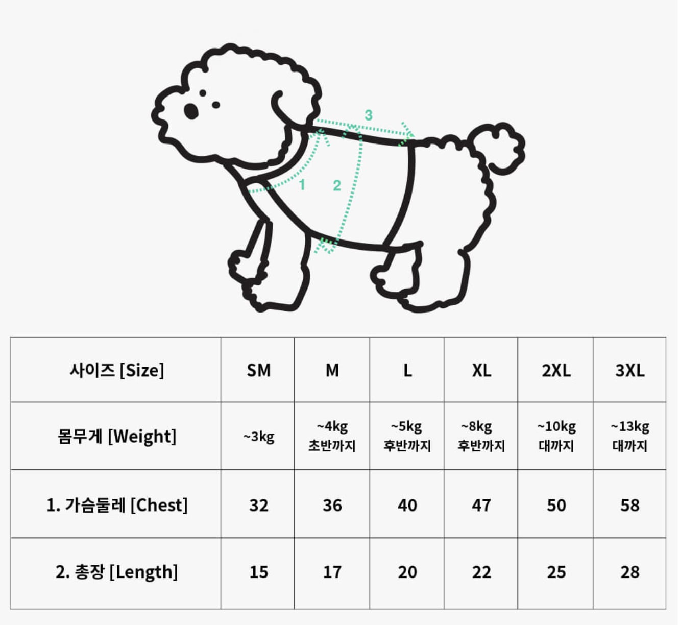 ・本サイズ表は犬種ごとの平均体型を基に作成しており、個体差があります。