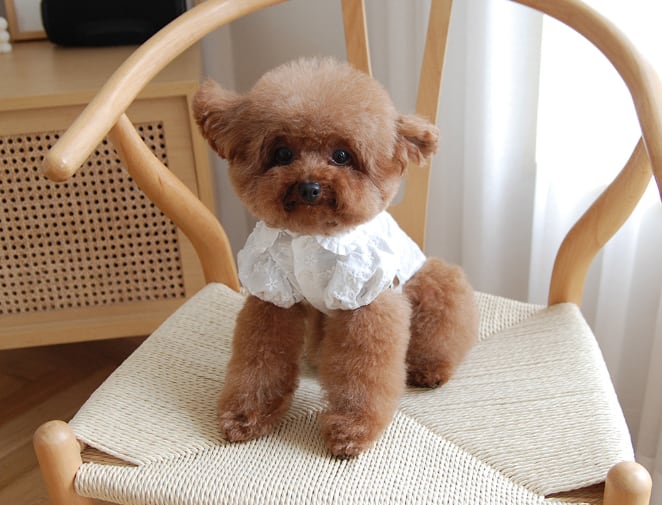 ワンちゃんの胸囲を測って、表の数値より2〜3cmほど余裕のあるサイズを選ぶと、より快適に着こなせると思います。