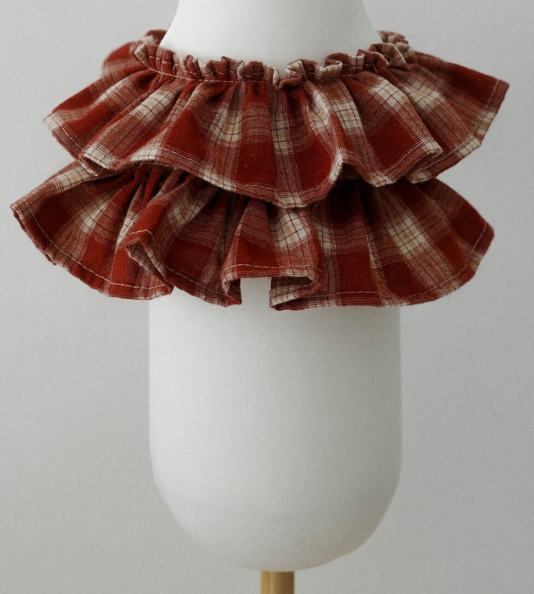 OHDIBSならではのセンスあふれるパターンと、まるでケープを羽織ったような2段フリルのディテールが魅力的なアイテムです。