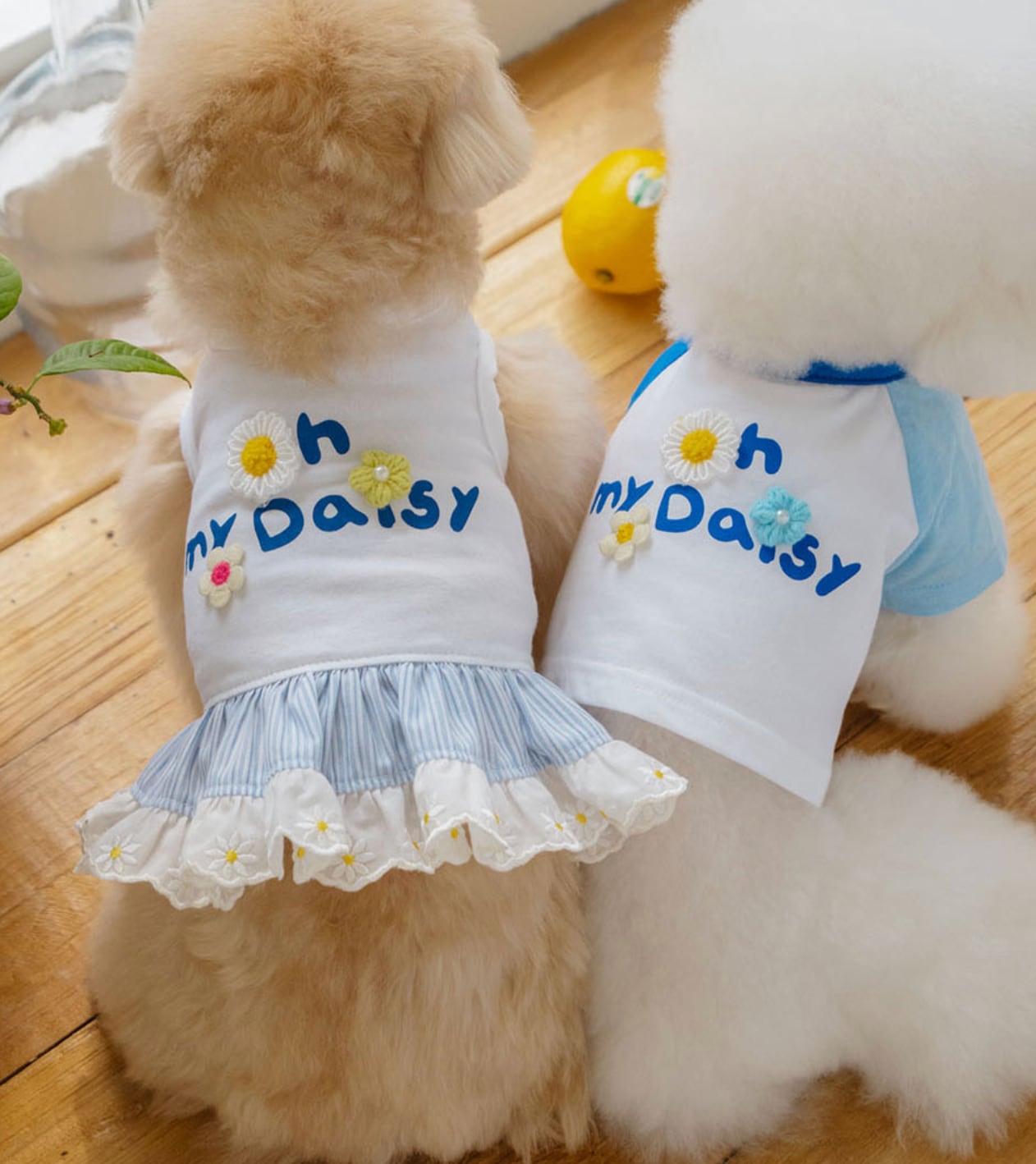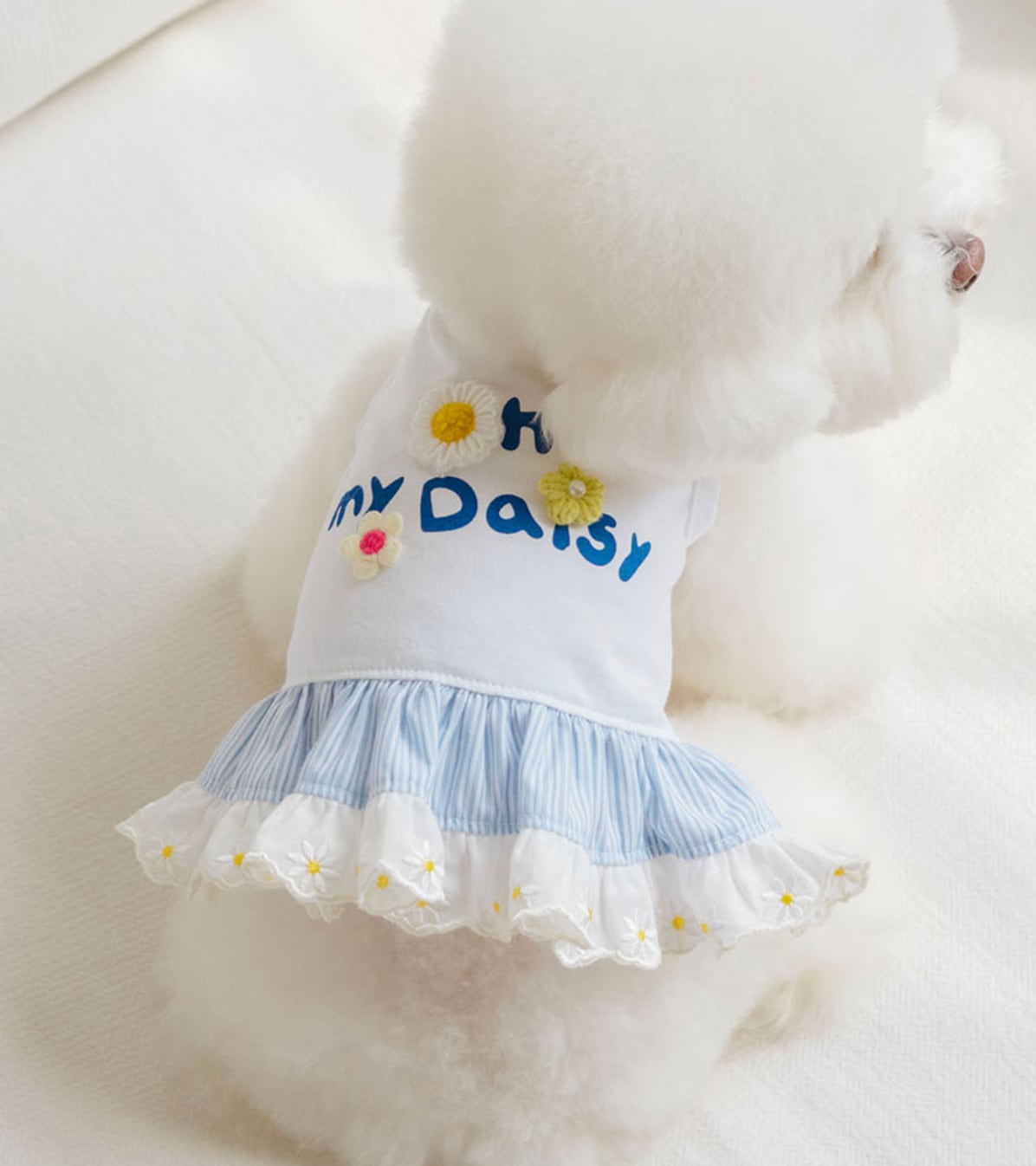 爽やかなブルーストライプに、立体的なデイジーモチーフがアクセントとなったデイリーワンピース。