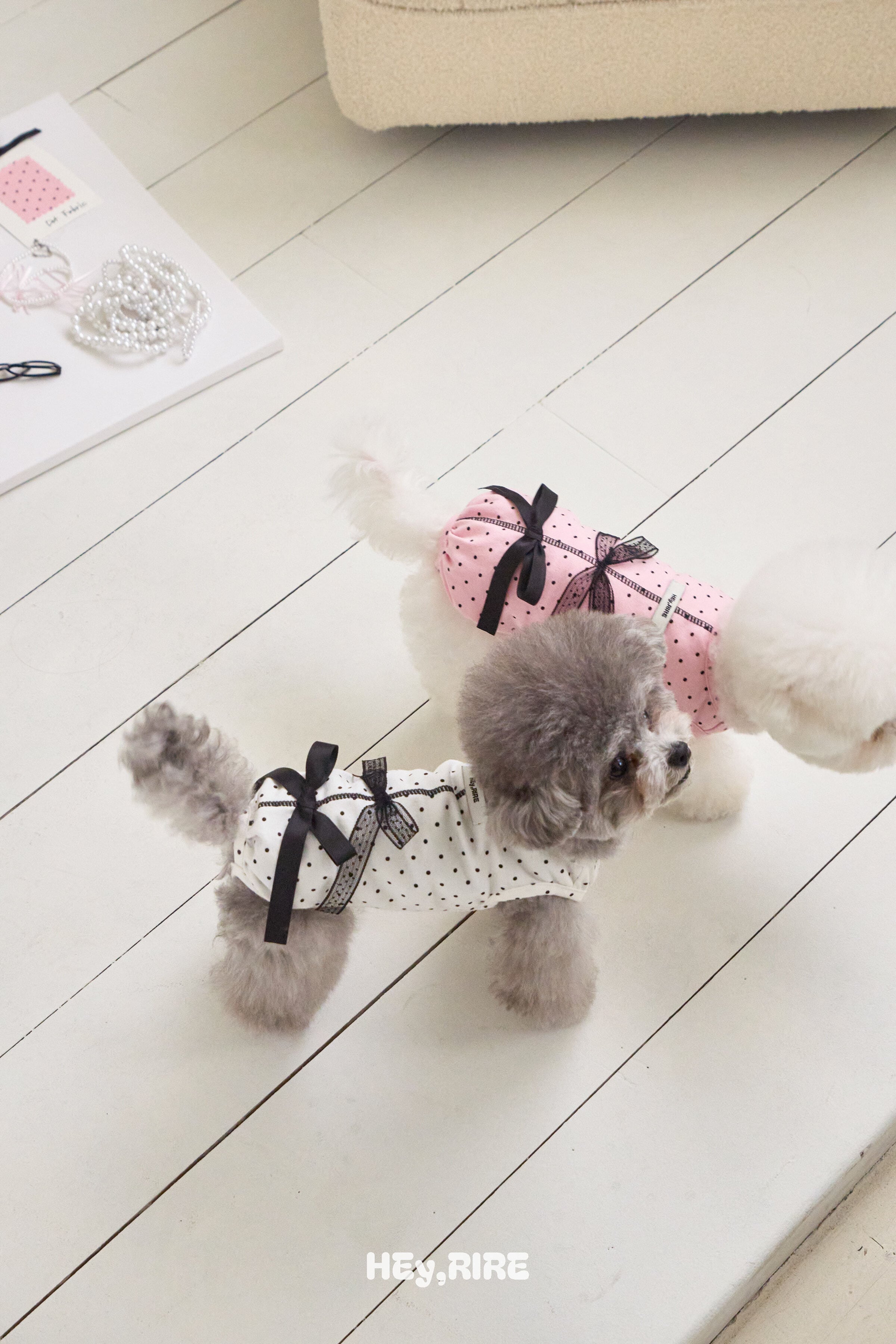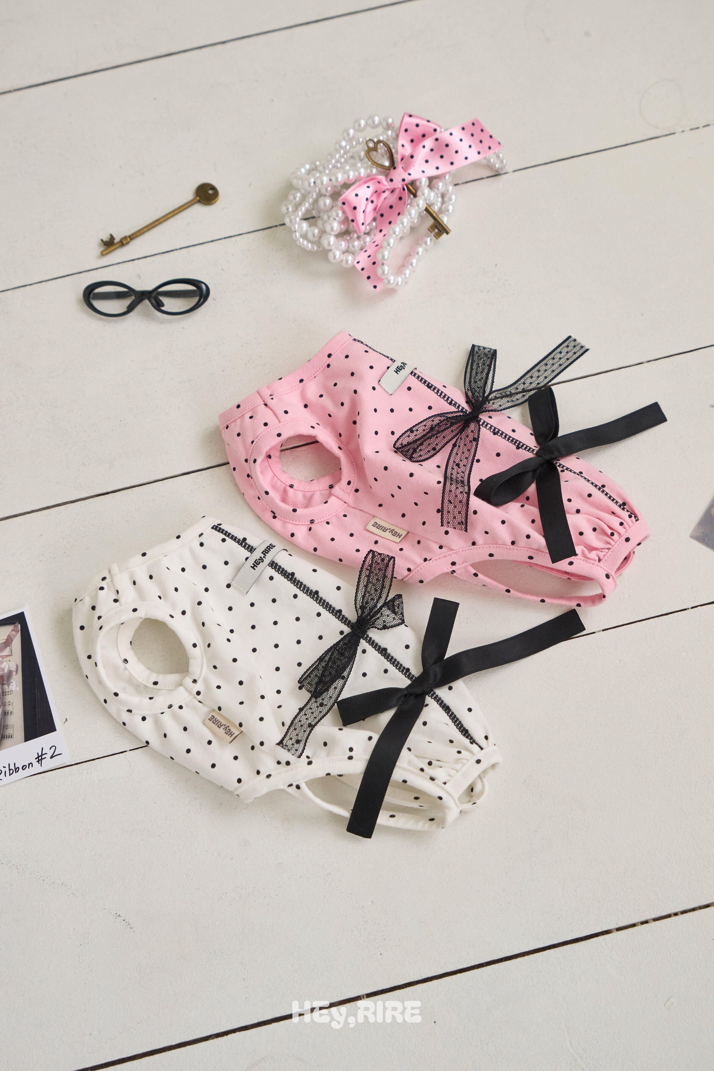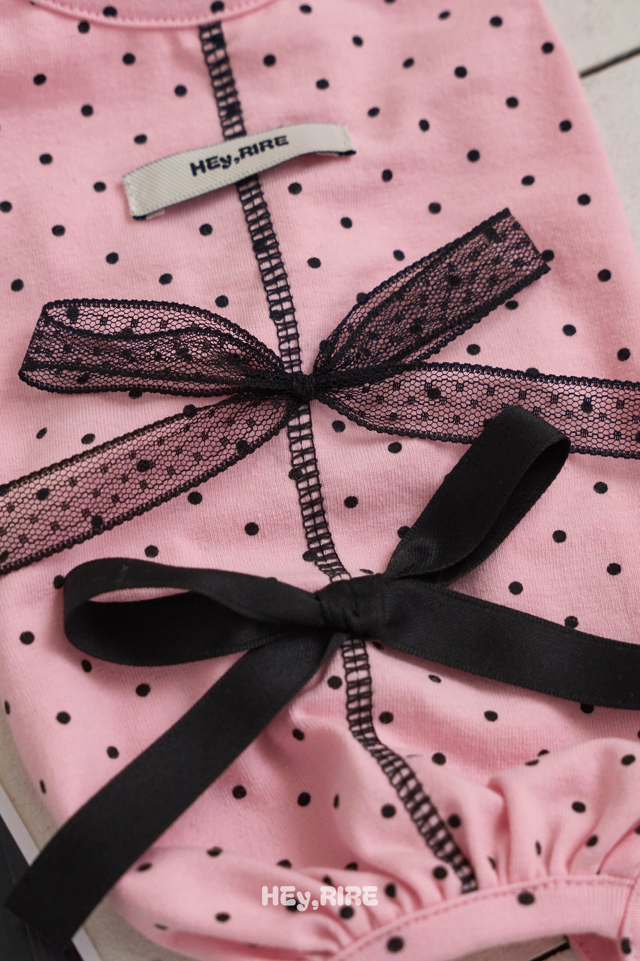 予約【HEy,RIRE】Coquette Ribbon Dot Bodysuit (2color)