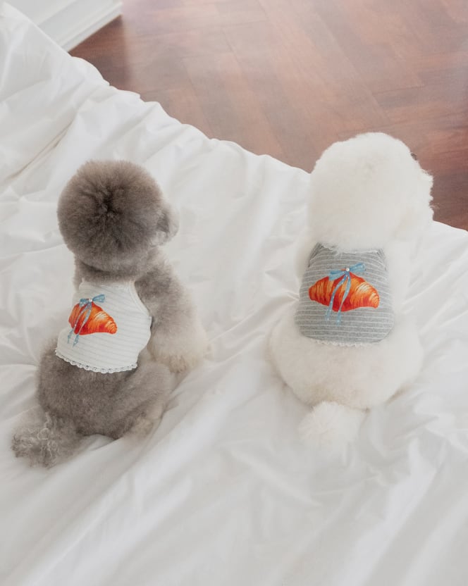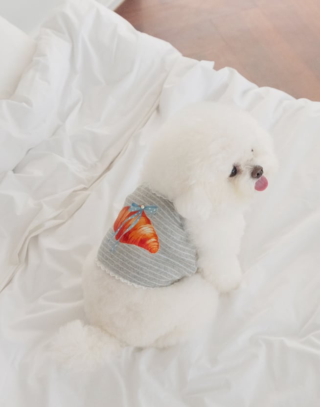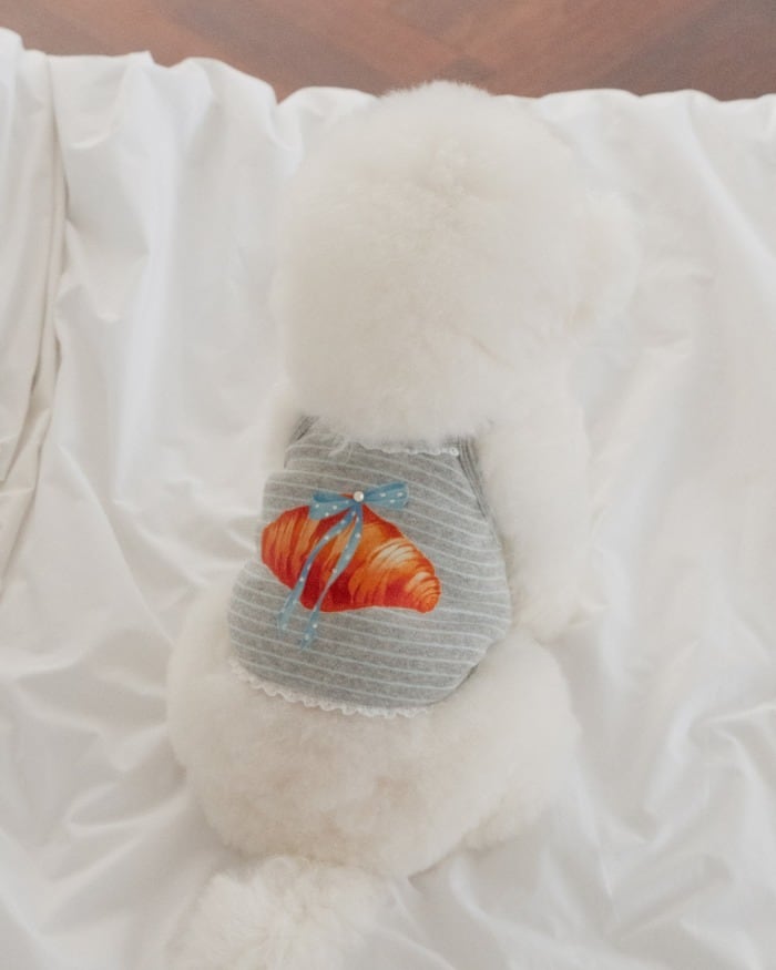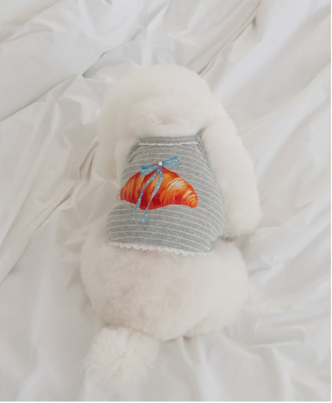 ・リアルなクロワッサングラフィックに、空色のドットリボンを加えた童話のようなムード