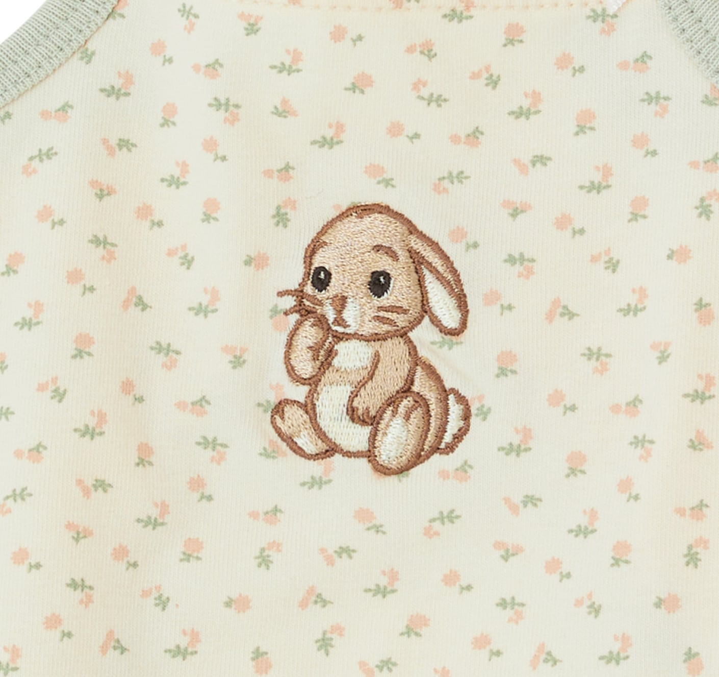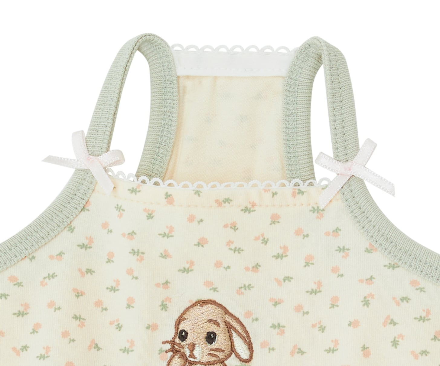 グリーンフローラルカラーは、バニーオールインワンの3色の中で最も薄手の素材です。