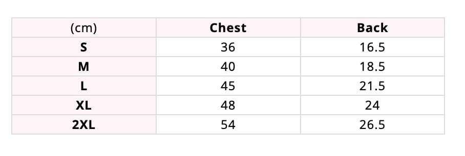 ・Baekji:首回り 22cm / 胸囲 32cm / 着丈 20cm / 2.7kg(Sサイズ着用)