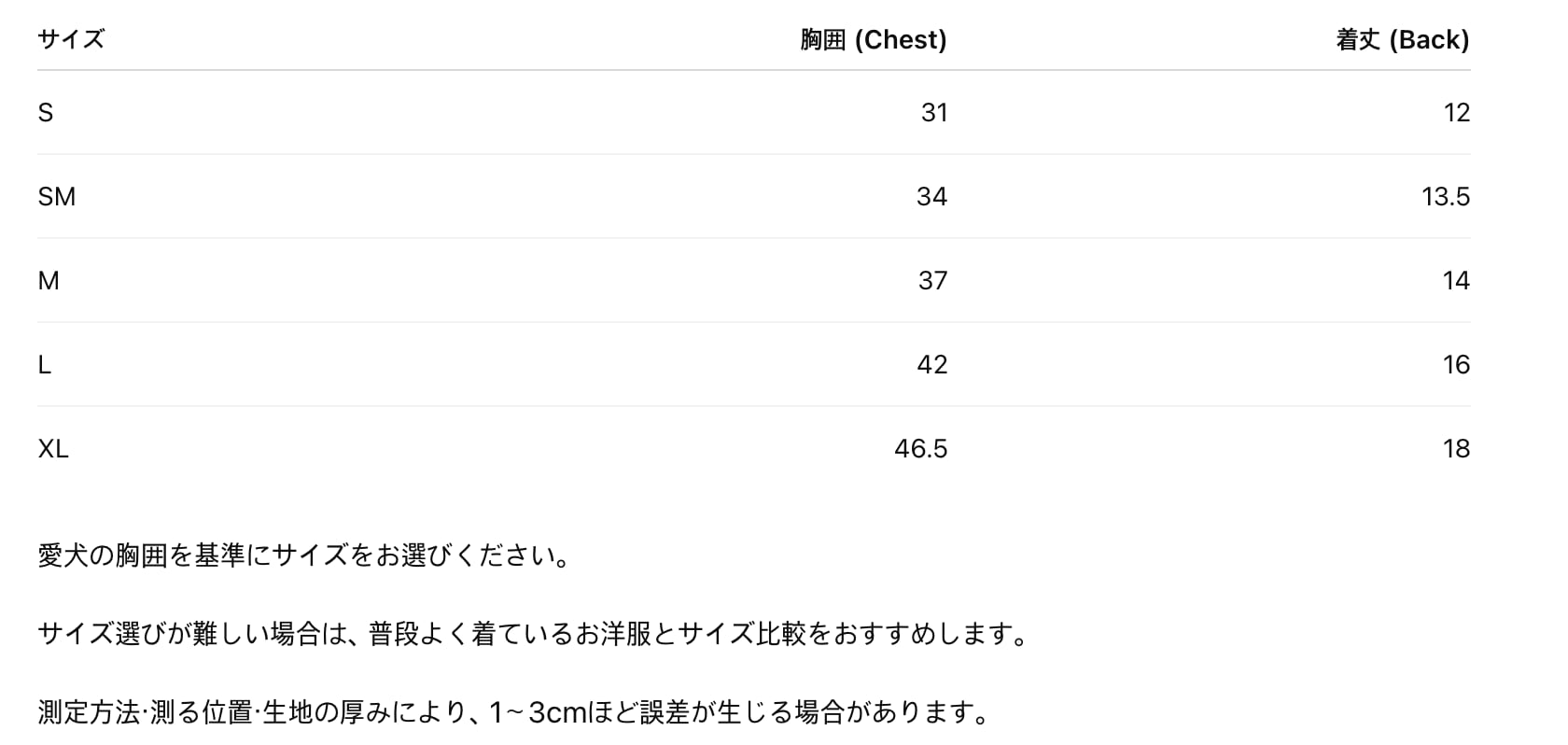 サイズは測定方法により、1〜3cm程度の誤差が生じる場合がございます。