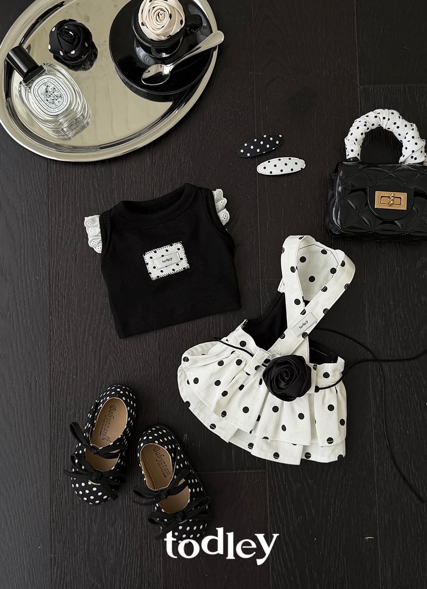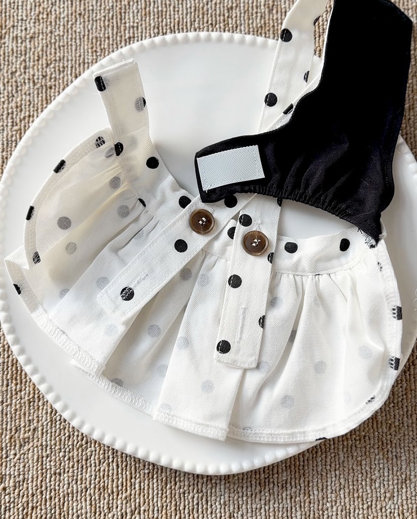 ふんわり広がる2段フリルシルエットと、クラシックなドット柄で、