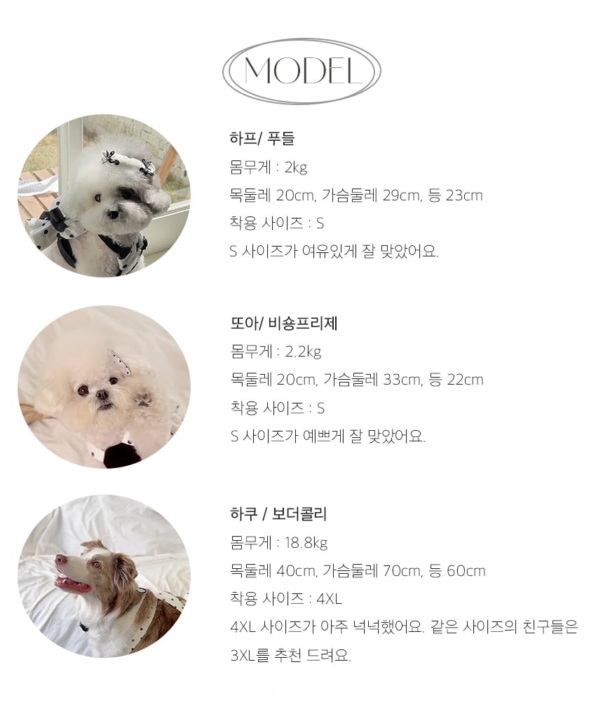 首回り:40cm / 胸囲:70cm / 背丈:60cm