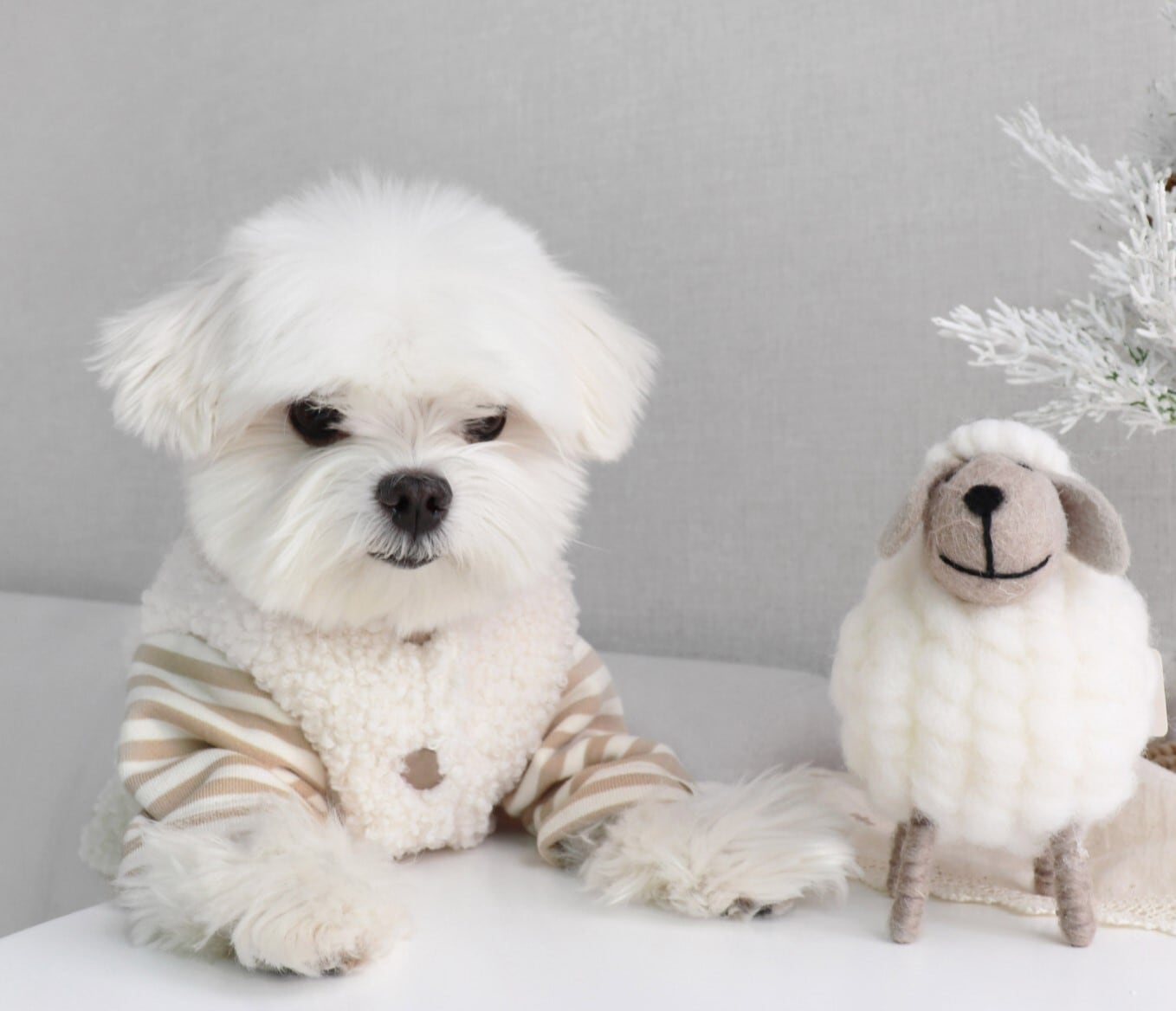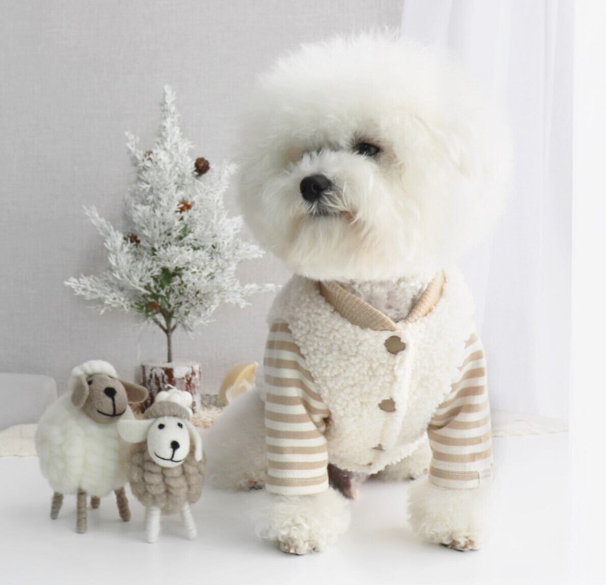 背中に羊さんのブローチが付いたとってもかわいい秋冬おすすめのもこもこフリースジャンバー。