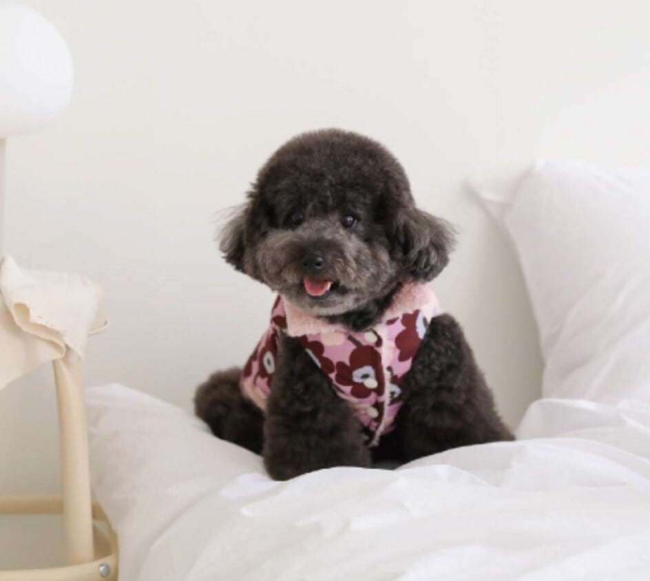 ふわふわのフリースと、フラワーパターンがかわいいベストです。