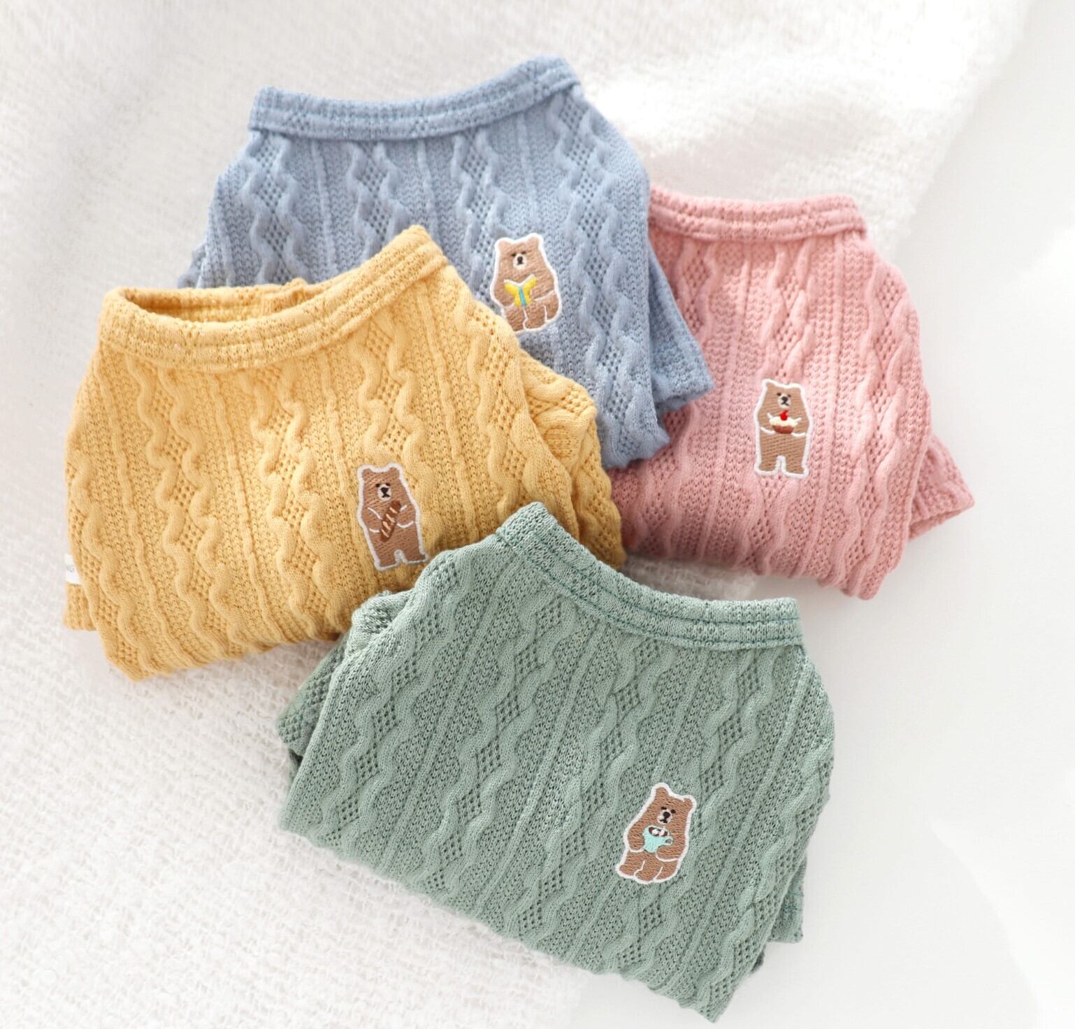 ぽこっとしたかわいい生地感に、クマさんの刺繍がかわいいカーディガンです。