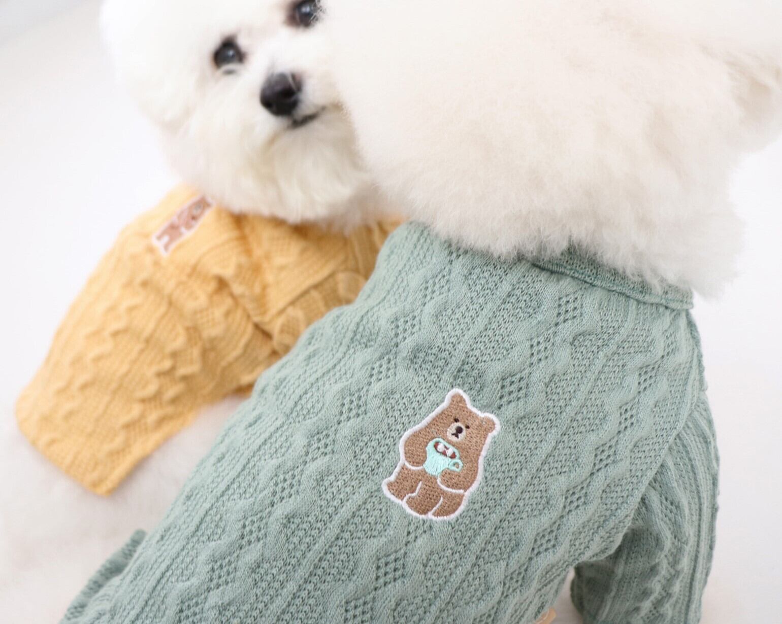 XL/即納【DURANG RURANG】teddy bear twist cardigan《Green》