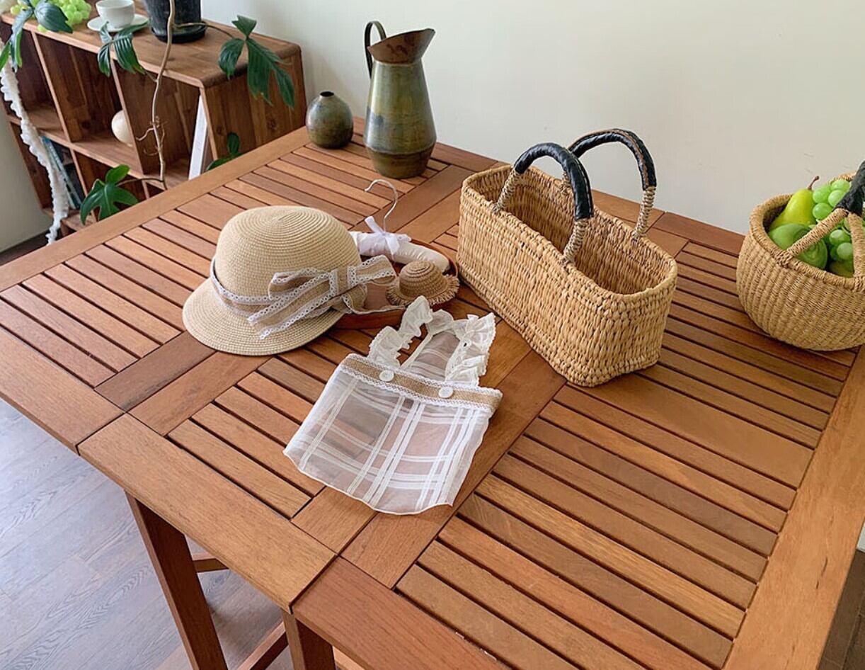 バカンスを思わせるデザインに、ボタンディテールがかわいいアイテム。