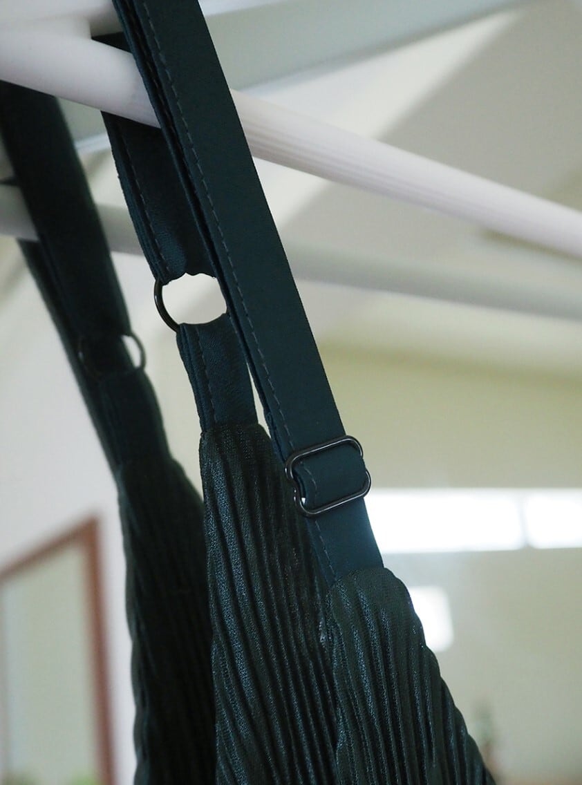 ゆったりとしたフィット感と伸縮性のいい生地、肩紐は長さ調節も可能です。