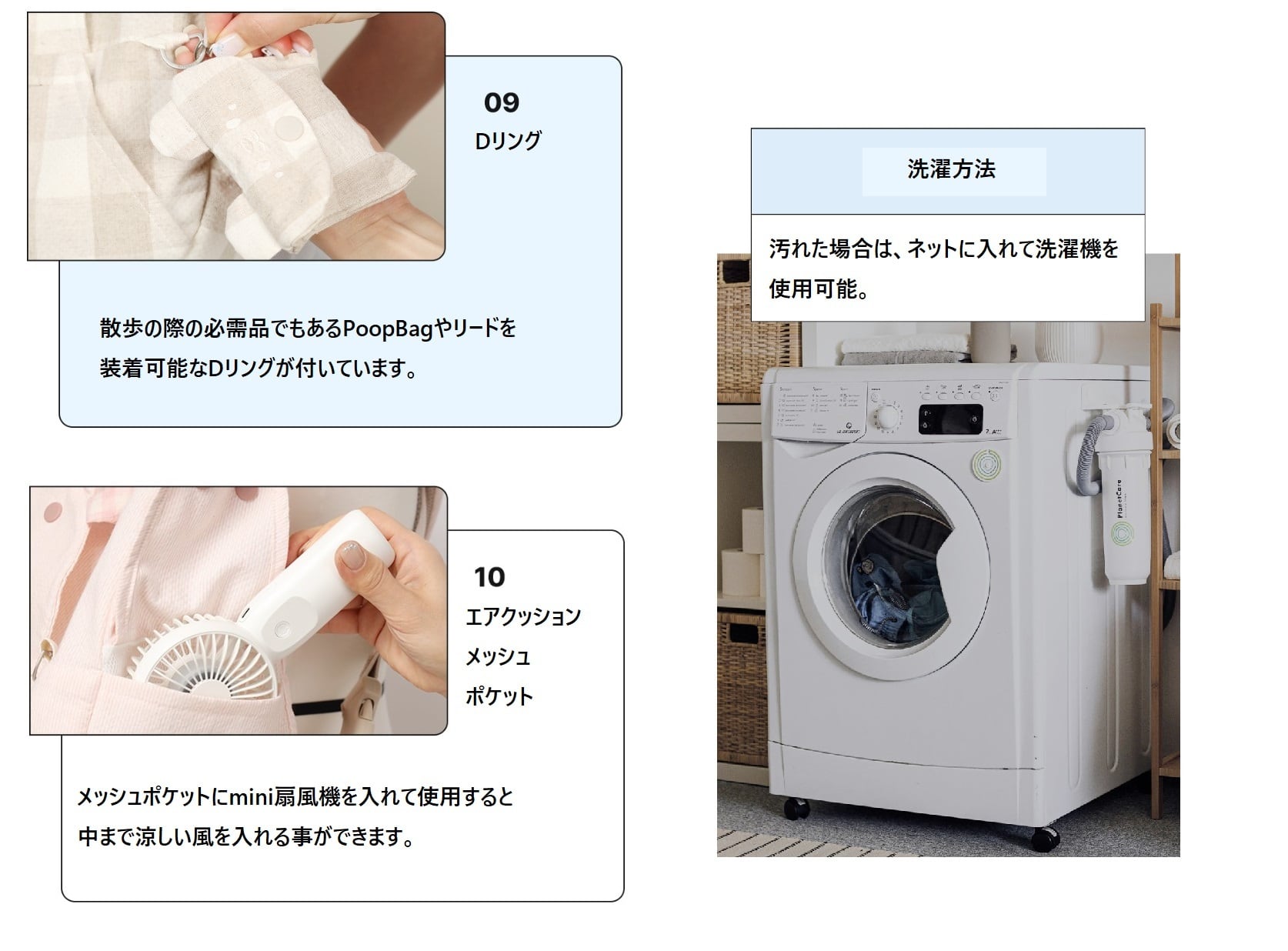 サイドの部分をメッシュにすることで、ミニ扇風機等を入れて暑さ対策が可能です。
