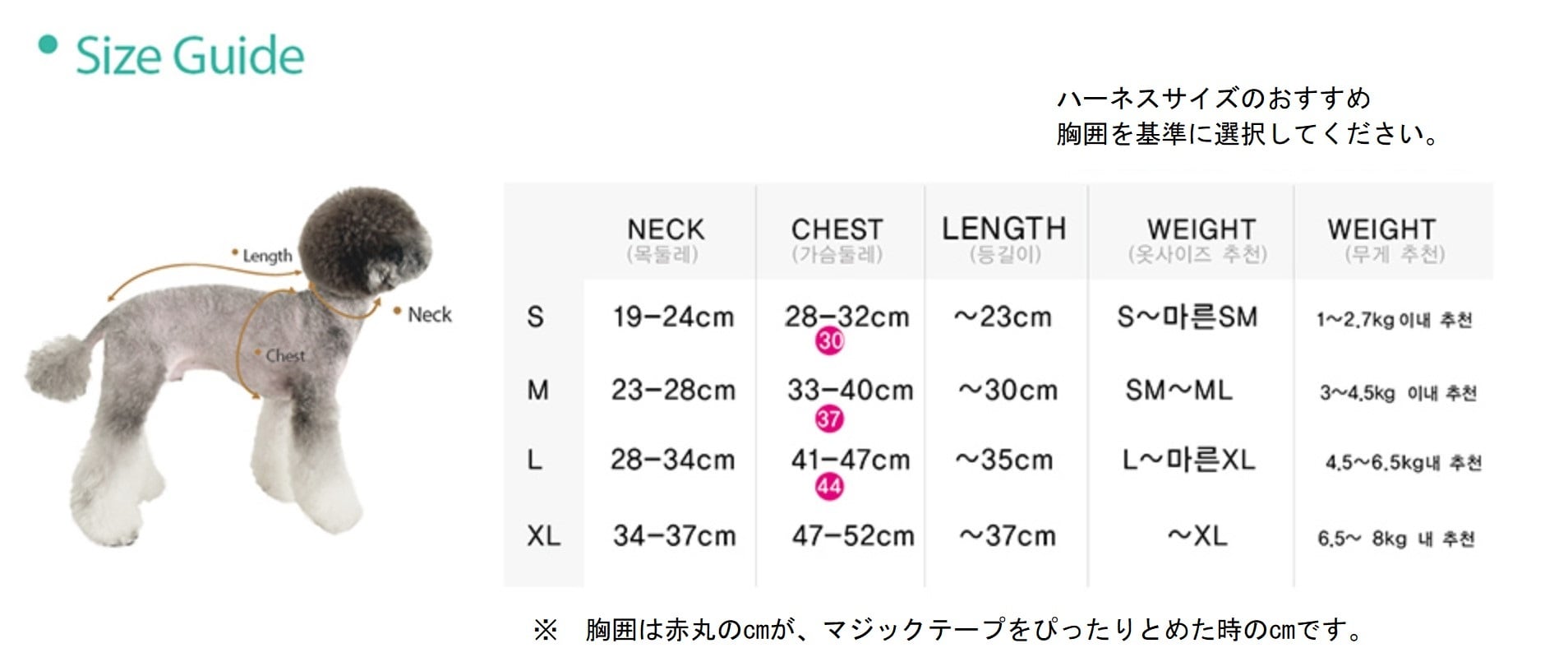 サイズが心配な方は、備考欄に胸囲/体重/犬種を記載して頂ければ注文時にメーカーへ追加で報告させて頂きます。