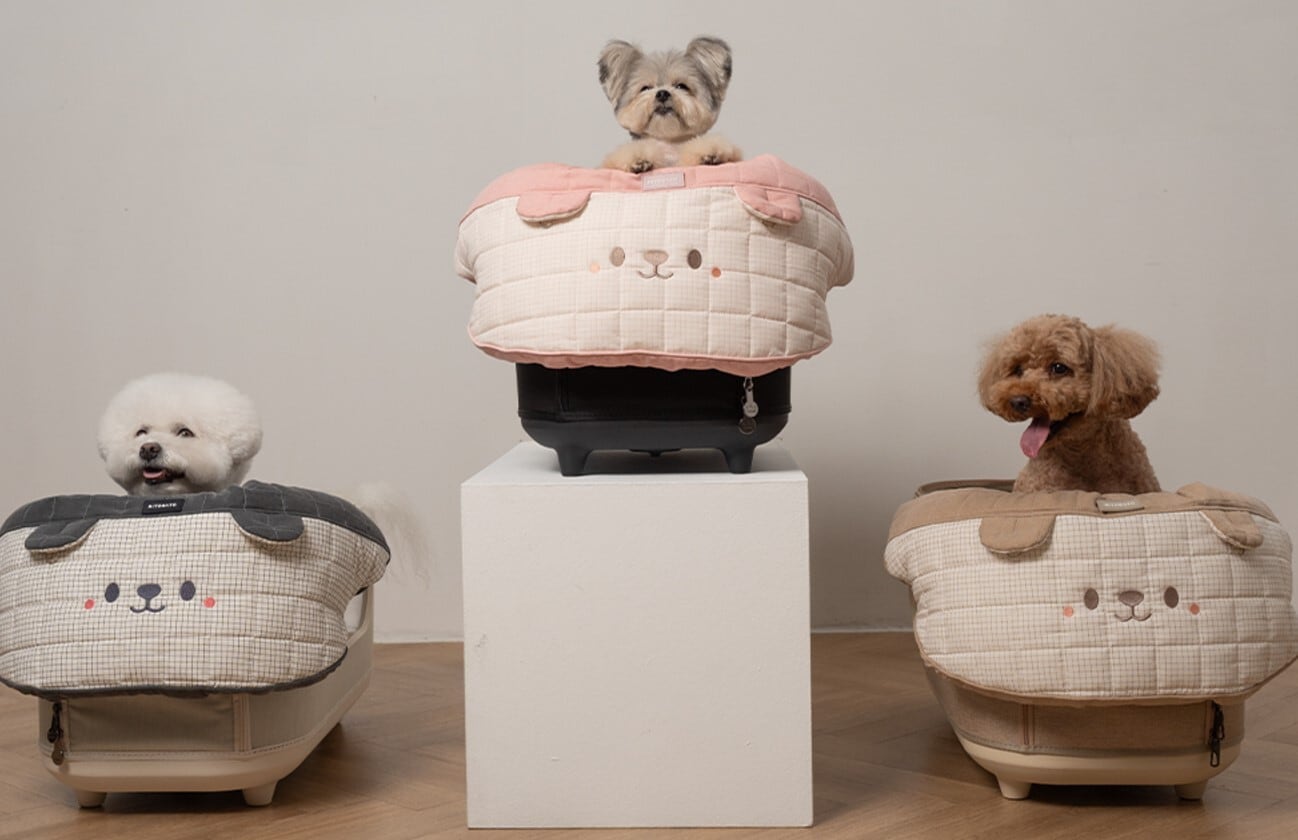とくに好奇心旺盛な子が移動中ガード部分にあごを付いたり前足を上げて寄りかかる行動をよく見るため、そういった子でも安心できるよう硬いガードを柔らかくふわふわ包み込むように設計しました。
