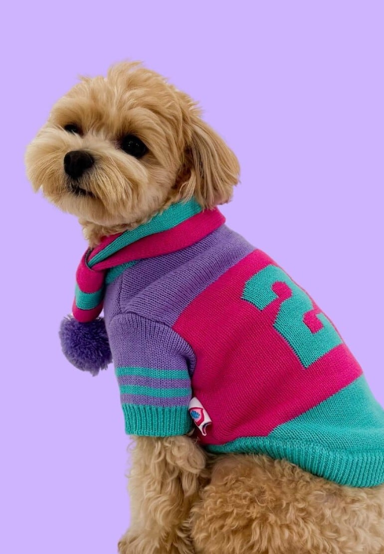 即納【TOOF】SPORTY VARSITY SWEATER (PNK/PPL/TURQ)
