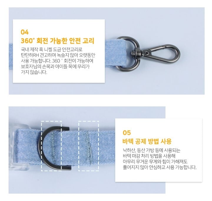 360度回転するフックと、ステッチをしっかりすることで強度も高めました。